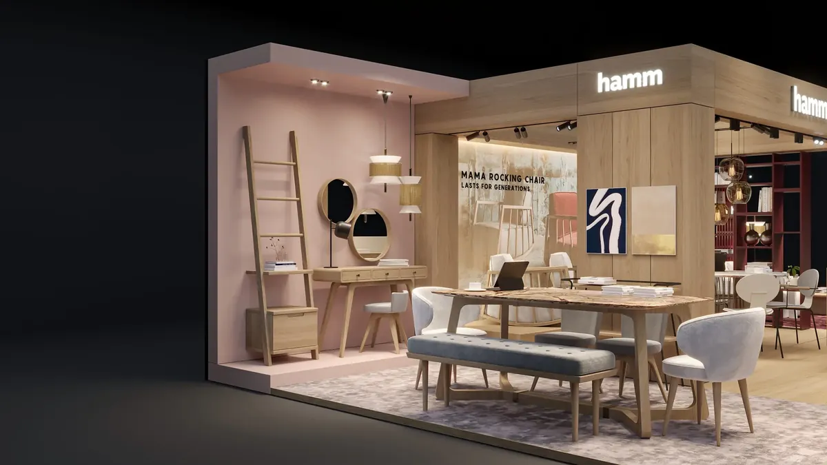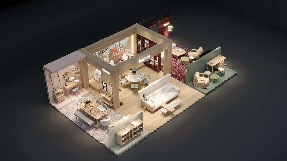 Our concept design project for the Cologne IMM Cologne '24 Exhibition Stand we prepared for the Hamm furniture company.