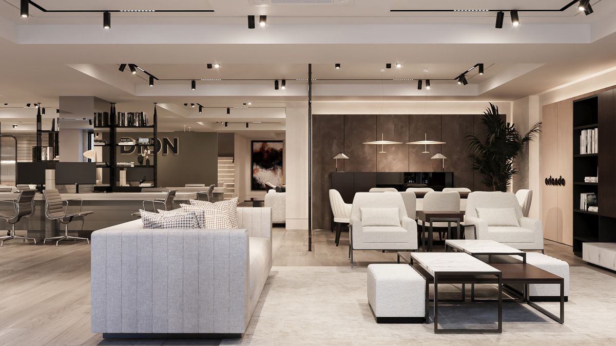 İç mekânda dengeli aydınlatma, doğal tonlar ve net dolaşım kurgusu ile ürünlerin ön plana çıktığı zamansız bir mağaza deneyimi oluşturuldu. Tasarım, DION’un kurumsal kimliğini mekâna net ve güçlü bir şekilde taşır.