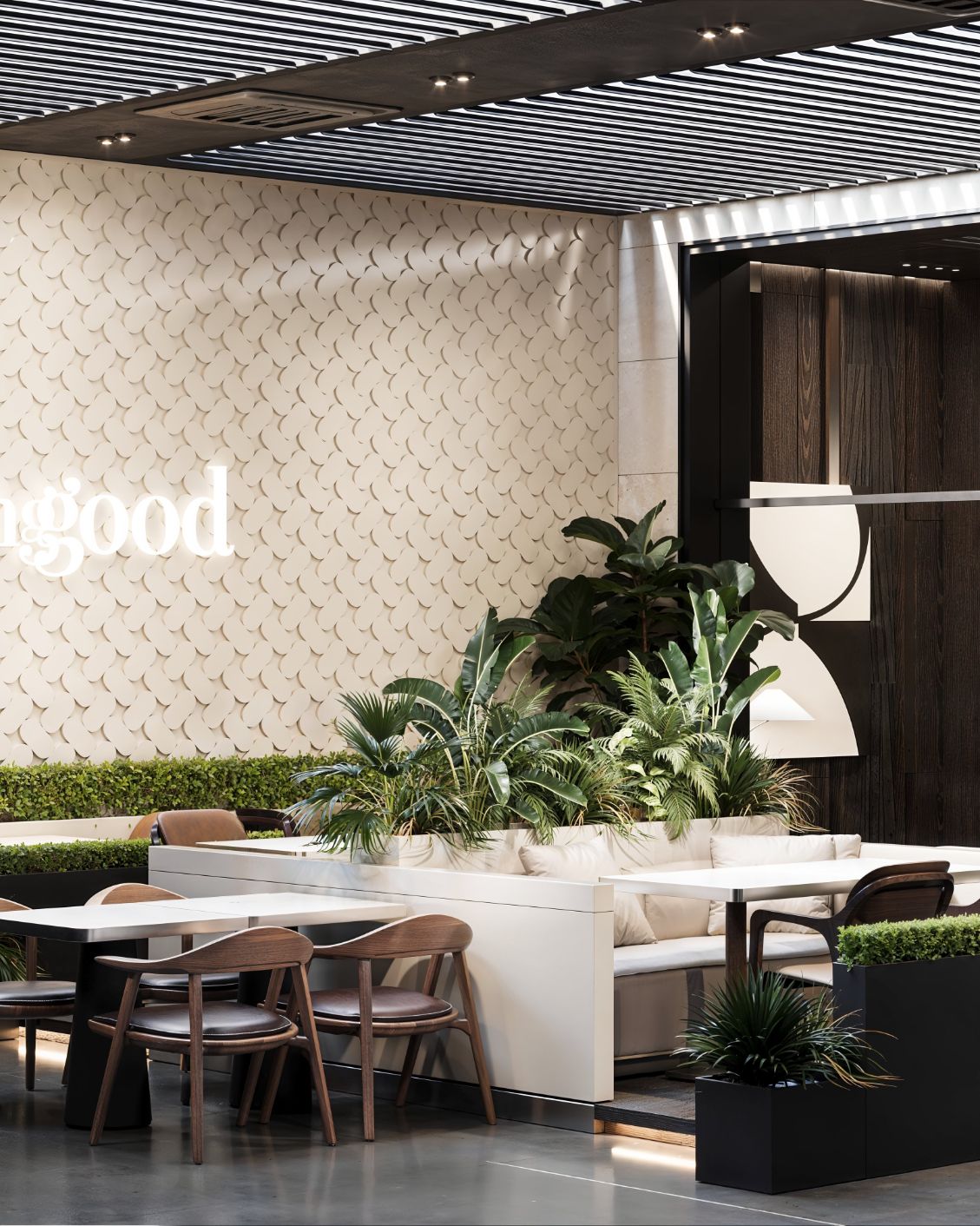 Sivas Hilton Oteli girişinde konumlanan The Coffee Club flagship mağazası, otel sirkülasyonu ile günlük kullanım alışkanlıklarını bir araya getiren dengeli bir mekân kurgusu ile tasarlandı. Cephede kullanılan modüler yüzey dili ve geniş cam açıklıklar, mağazayı dış mekânla sürekli temas halinde tutuyor.